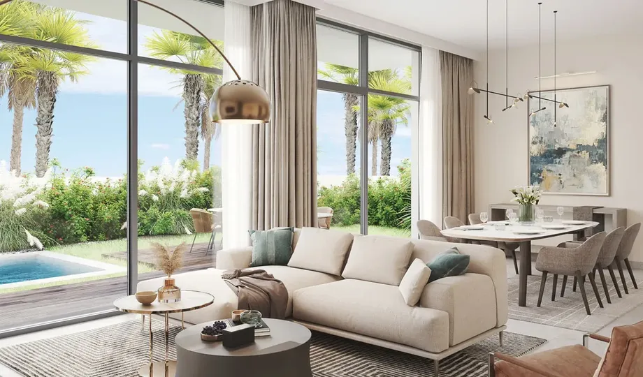 The Tilal Al Furjan masterplan shows light and bright four- or five-bedroom villas available in various configurations. Semi-detached villas start at around 4,000 sq ft while the largest detached villas offer around 5,300 sq ft of living space.