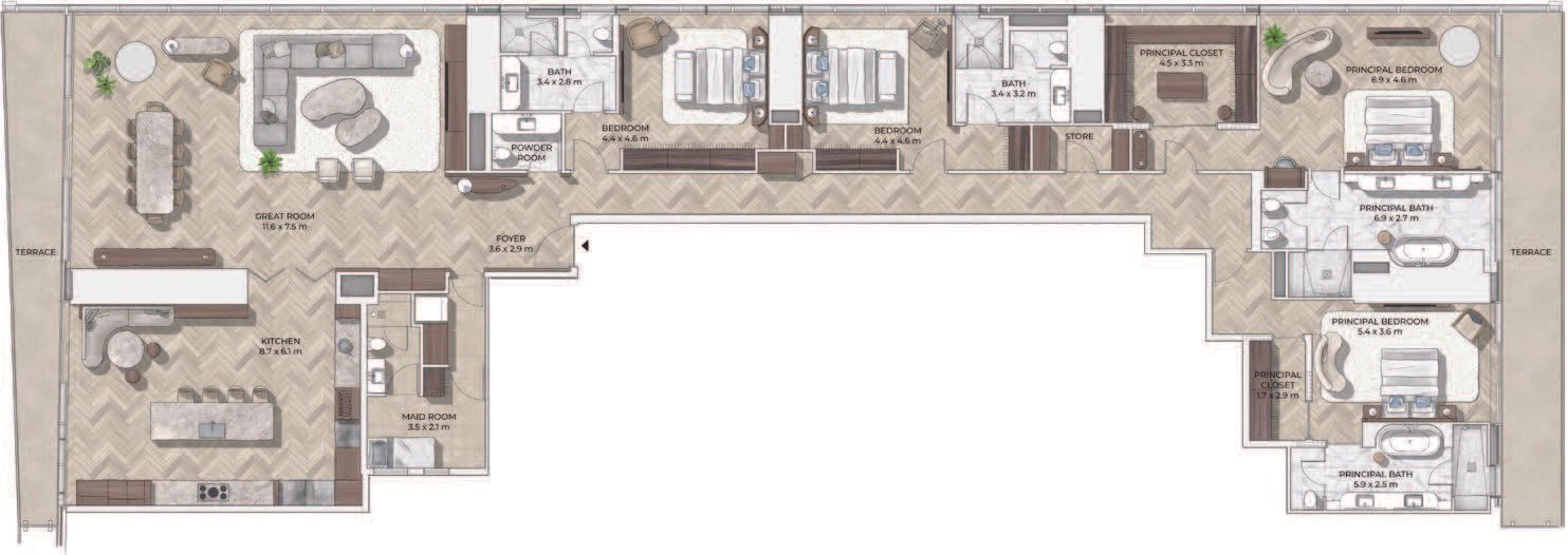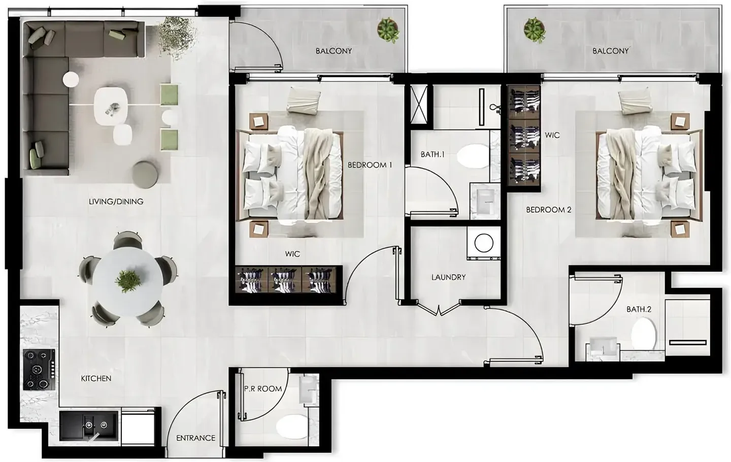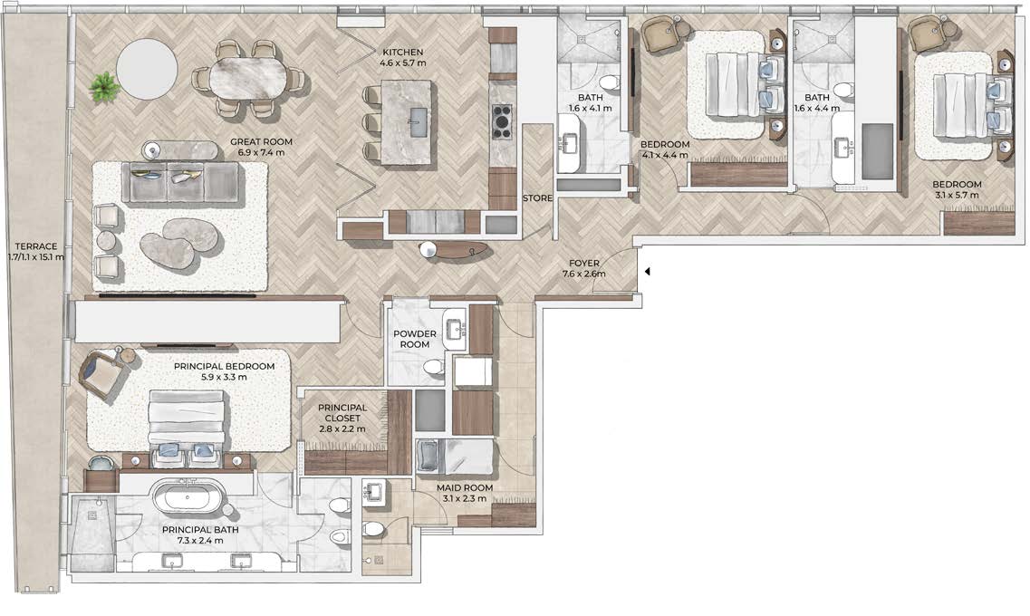 The location of the complex provides quick access to key points of the city: 15 minutes to Downtown, Dubai Mall and Business Bay, 10 minutes to Meydan City, 5 minutes to Silicon Oasis Mall and Al Barari Forest, 25 minutes to the beach, Al Qudra Lake and Jumeirah Lake Towers, 20 minutes to Dubai International Airport, and only 5 minutes to Global Village.