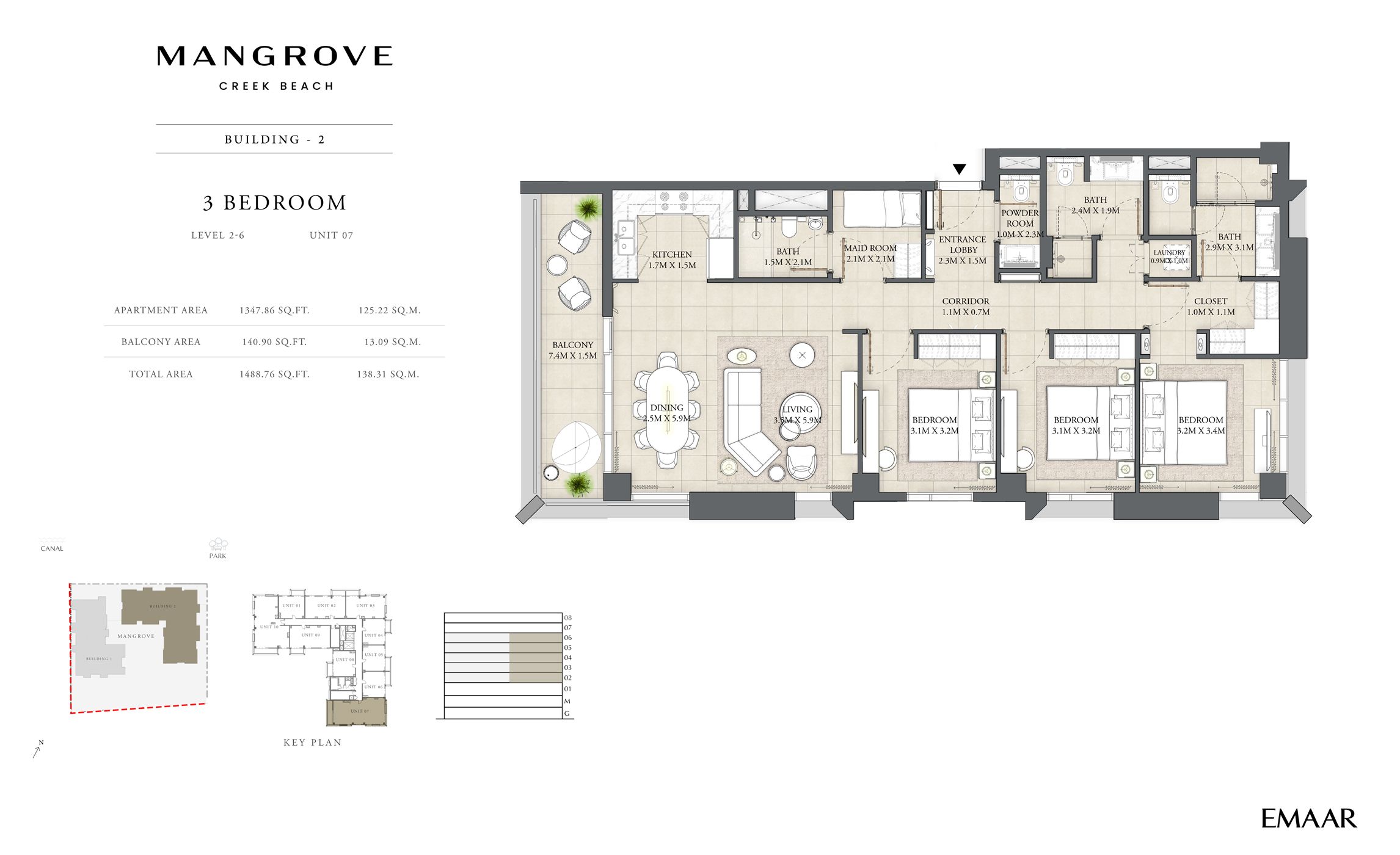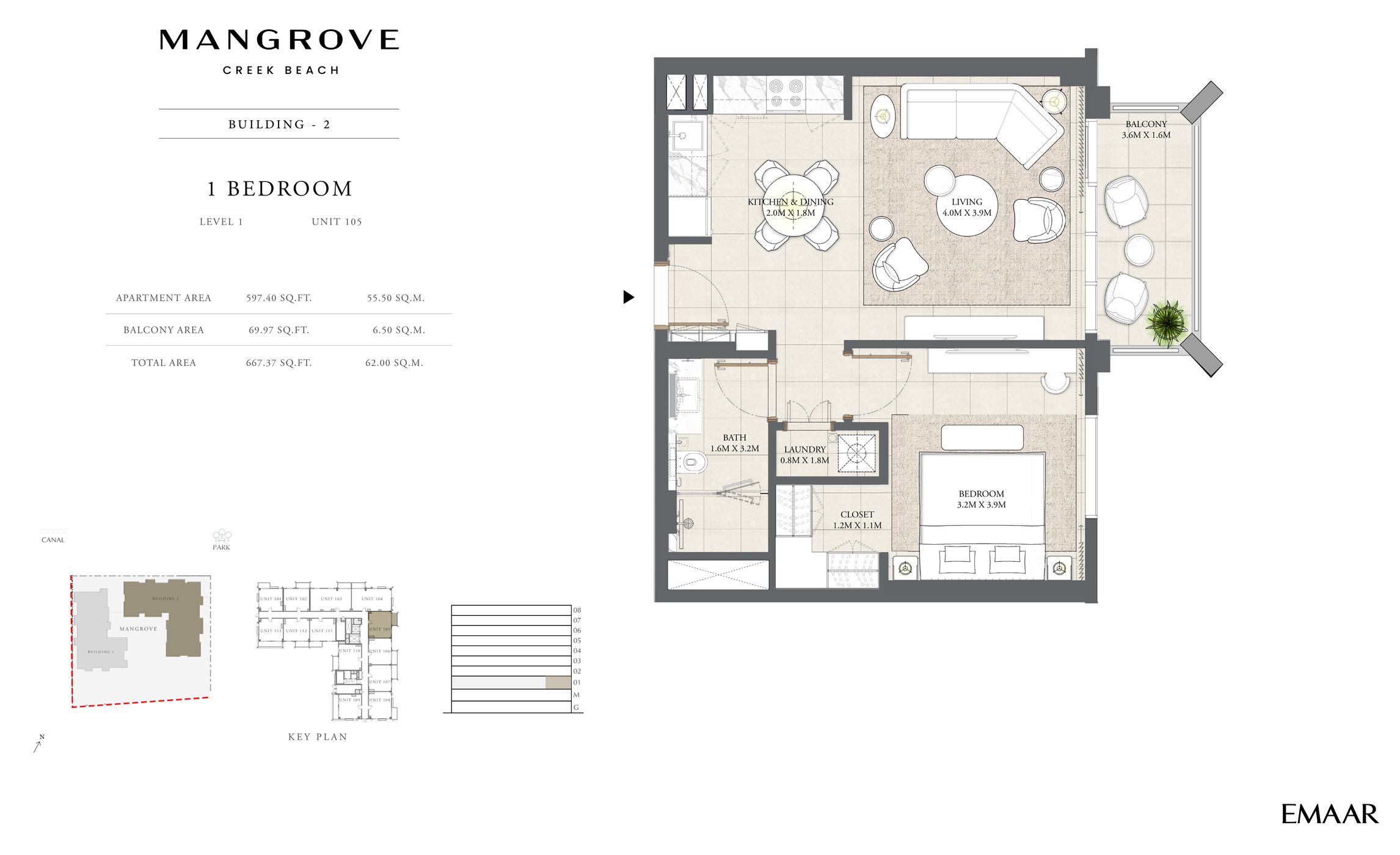 Mangrove offers a collection of 1, 2 and 3 bedroom apartments adjacent to a lush park, featuring unparalleled views of the Creek. These elegantly designed buildings are situated in a prime location, surrounded by world-class amenities. With a comprehensive network of roads, residents enjoy convenient access to the best that Dubai has to offer and beyond.