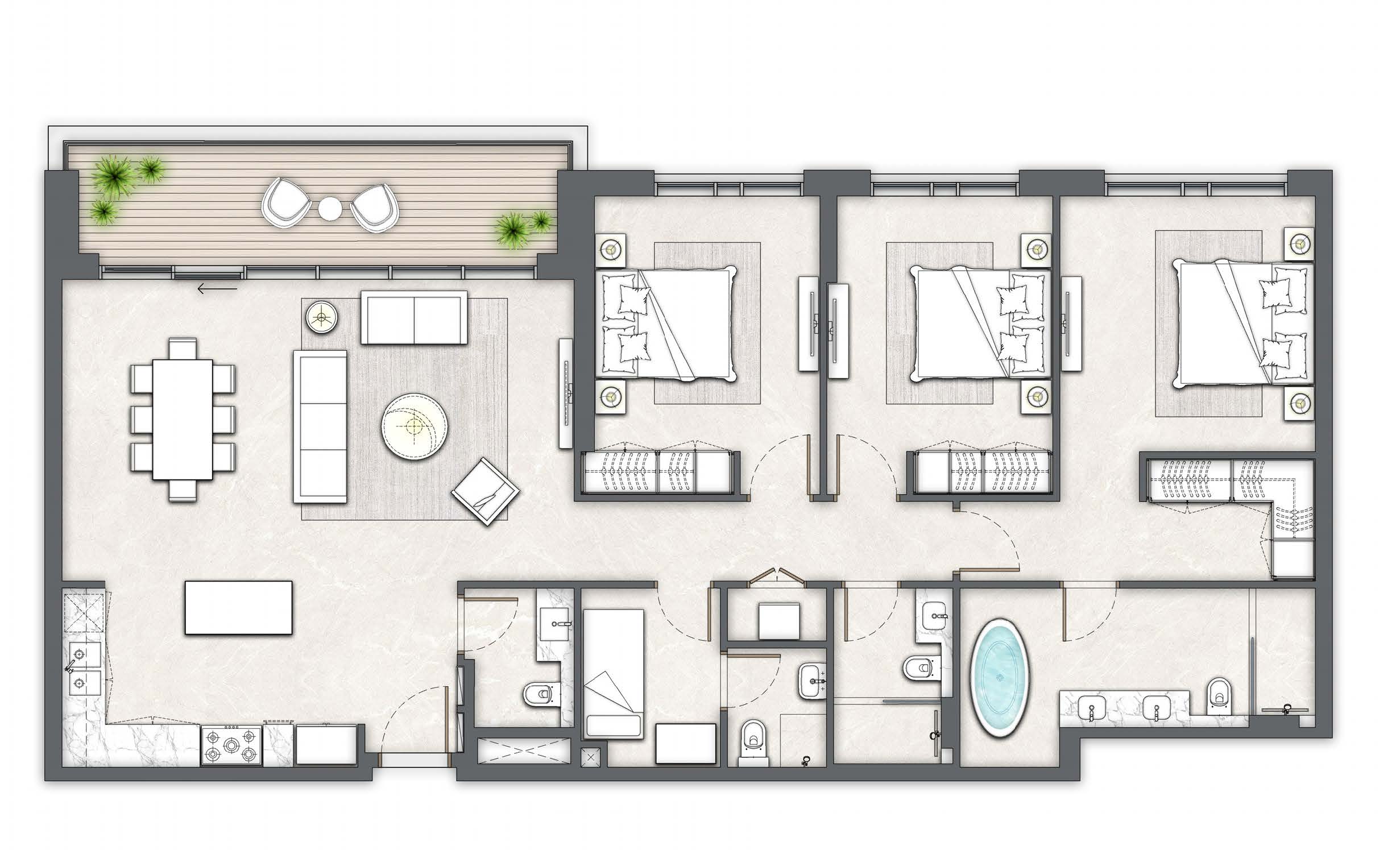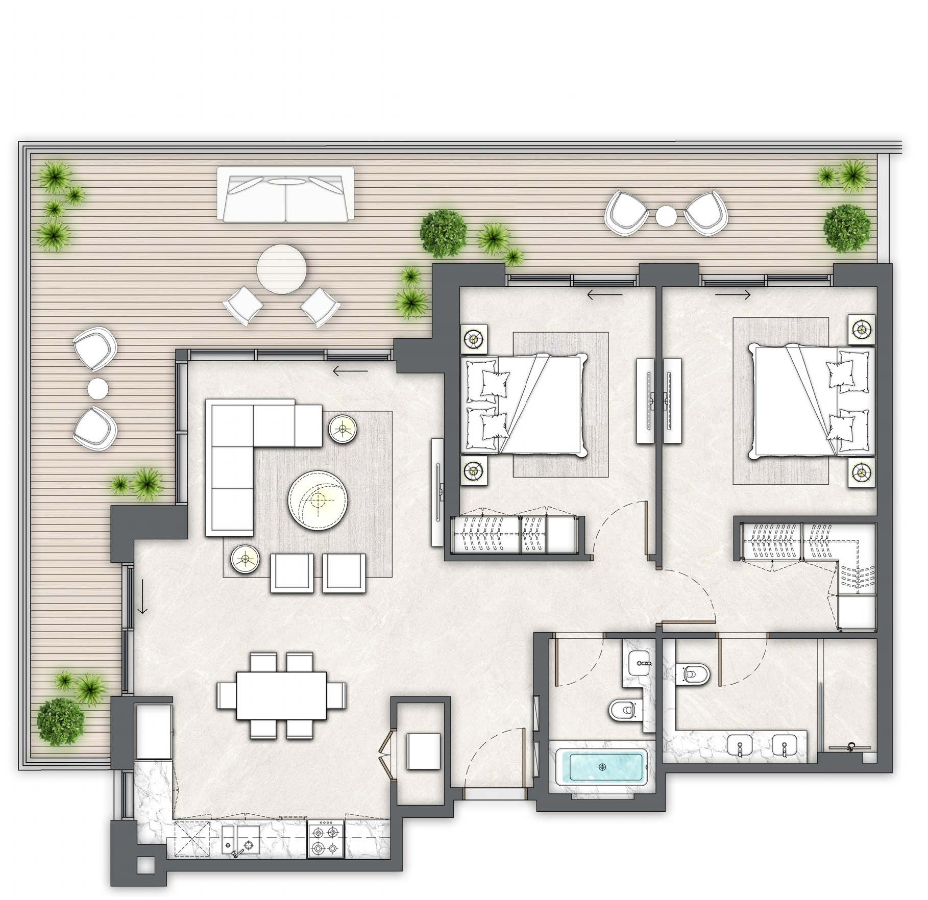 The Island District, where The Cove is situated, epitomizes high-end living with its blend of elegant residences and a rich array of recreational amenities. Residents will revel in stunning views, the enchanting glow of the promenade lights, and the opportunity to enjoy moments in the district's lush central park, spectacular marina, yacht club, and luxurious five-star hotels.